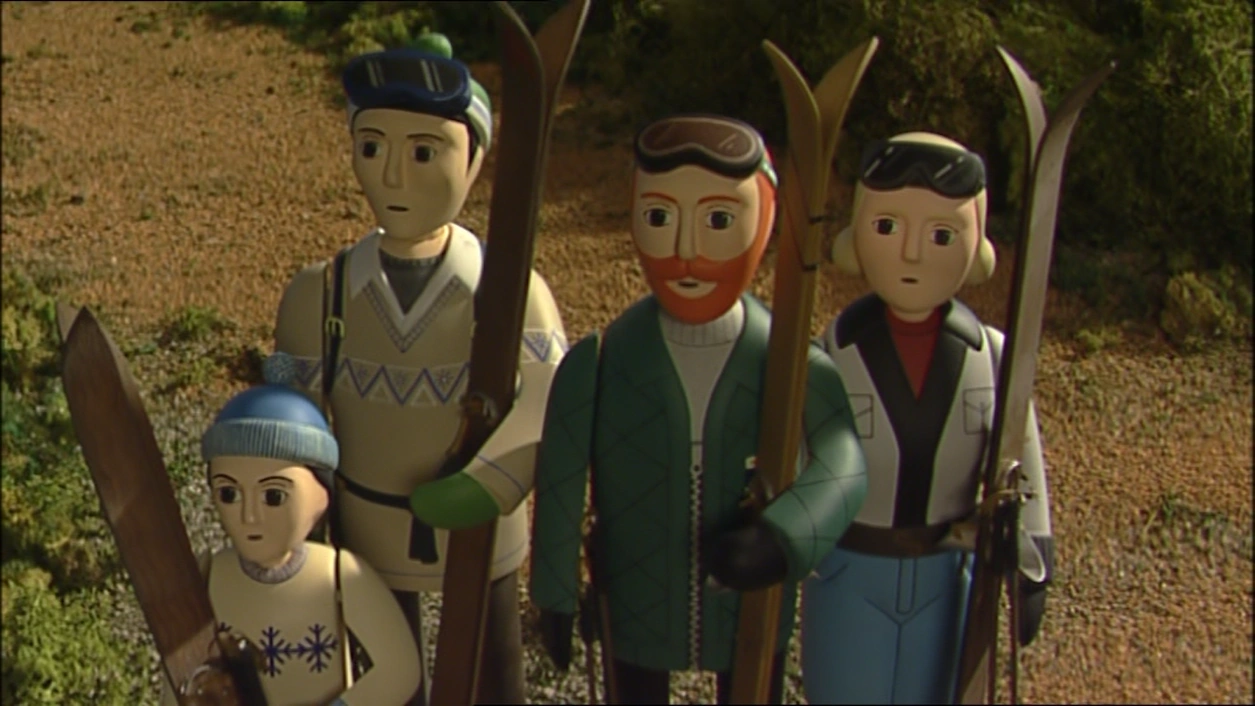 Some skiers once arrived at the Sodor Castle due to the signposts pointing in the wrong direction. When Rusty was searching for the Hatts, he asked the skiers if they had seen them, but they did not. Rusty later wondered why the skiers were at the Sodor Castle and realised that the signposts were incorrect.