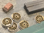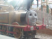 Stepney's model used to be on display at the Discover Thomas & Friends Exhibition at Drayton Manor but was removed from the layout in December 2018. Despite this, several of his wheels remain on the layout (and two were on a flatcar in the current layout), although these are spares and not the originals.