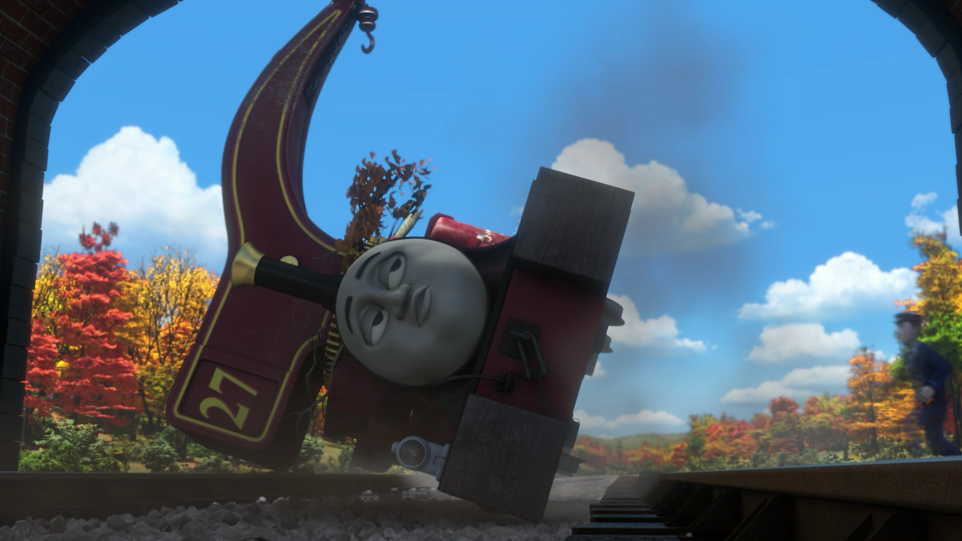 Eventually, Harvey is hoisted back onto his wheels and onto a flatbed, and Thomas takes him to the Steamworks to be repaired. Harvey thanks Thomas for helping him, and Thomas tells Harvey that there is nothing wrong with asking for help when one needs it. Thomas also tells Harvey that because he always helps other engines, he is more than happy to help Harvey. Still, Harvey admits that he did not want to be made a fuss of or be teased about his crane being damaged. Thomas kindly explains to Harvey that broken-down engines are not made fun of, and sometimes a fuss is needed to get the job done.
