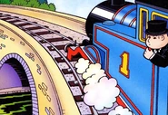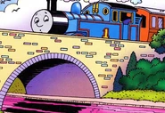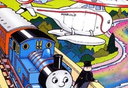 When Thomas crosses the river, he is most surprised to see the water is pink. Later, he takes the Fat Controller to see the strange pink river. When Thomas and the Fat Controller arrive at the bridge, the river is now bright green. From above, Harold can see the problem; there has been a spillage at the Paint Works.