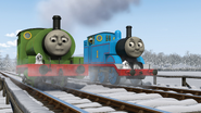 Thomas is looking forward to the Sodor Winter Holiday Party, but his friend Percy has broken a coupling rod and will not be able to attend. As Thomas shunts Percy to the Sodor Steamworks, Thomas finds Edward who has also broken down. Thomas delivers Percy to the Steamworks and then goes back to fetch Edward.