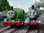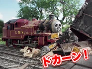 Arthur’s first job is to push a fruit train to the market, with the trucks sining a rude song at him. Thomas gets a naughty idea and tells Arthur that he must not let the trucks to sing or else he would be in trouble with The Fat Controller. Arthur crossly orders the engines to truck while hauling them across the line, with the trucks deciding to get back at him. They make it hard for him to push them, with Arthur struggling to get up Gordon’s Hill and ending up rocketing down the other side.