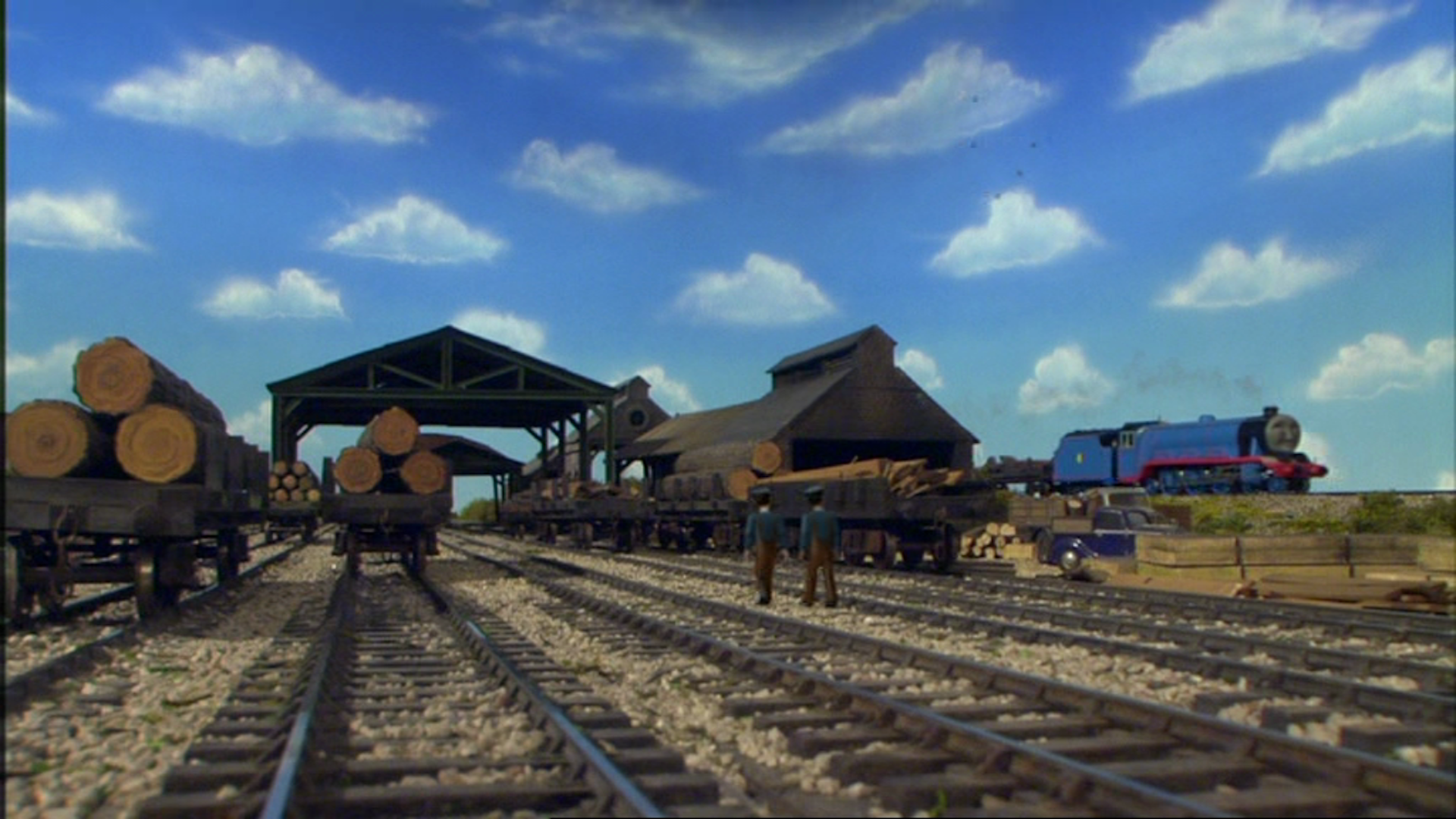 During the rebuilding of Tidmouth Sheds, Thomas bumped 'Arry and Bert's flatbeds, causing the yard's crane to drop its timber onto the tracks. This backfired when Thomas later discovered this had delayed the rebuilding of Tidmouth Sheds.[2]