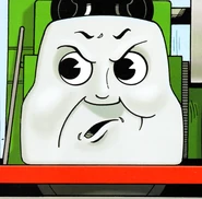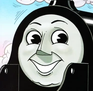 Emily pulls up at the beach station and her passengers eagerly step off the train. Emily and George hear a hooting sound and both spot a small train with carriages moving along the promenade. George has never seen the strange vehicle before, but Emily has; she tells George it's the Car-Train for seaside rides and it has a motor and tyres. George doesn't like the thought of a Car-Train; a car should be a car and engines should be scrapped.