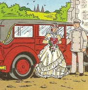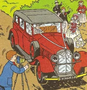 The Wedding Car is a big, long, red car. It is used for transporting brides to weddings. It once broke down after transporting a bride to her wedding. The bride, groom and guests had to go with Thomas to the reception at Wellsworth.