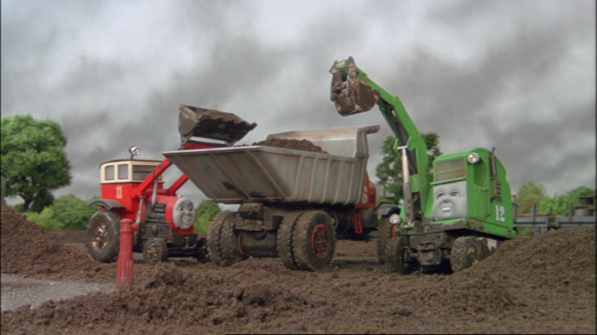 - A partial dissolve from "You Can Do It, Toby!" is shown before a shot shows Toby shunting coal trucks, making it not cut properly.
