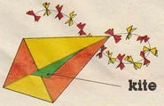 Later that week, Thomas sees a kite being flown by a boy. The kite is bigger than any other Thomas has seen and the boy had made it himself out of string, wooden poles and cloth. Unfortunately, the string is not strong enough to hold such a big kite. As Thomas watches, the string breaks and the kite flies away. As Thomas puffs on down the hill, he sees the kite blowing in front of him. Gradually the kite drops beyond a rise in the track. The driver thinks the kite may have landed on the rails, so he proceeds slowly. As Thomas puffs cautiously around the bend, he sees the kite on the rails ahead. The driver grabs the kite, but then scratches his head; they have nowhere to store the kite as it is too big to fit in the cab. Thomas' fireman has an idea. So they double up the remaining string to make it stronger and then attach it to the cab. Thomas is delighted to finally get a chance to fly a kite. The kite is then returned to the boy on the return journey.