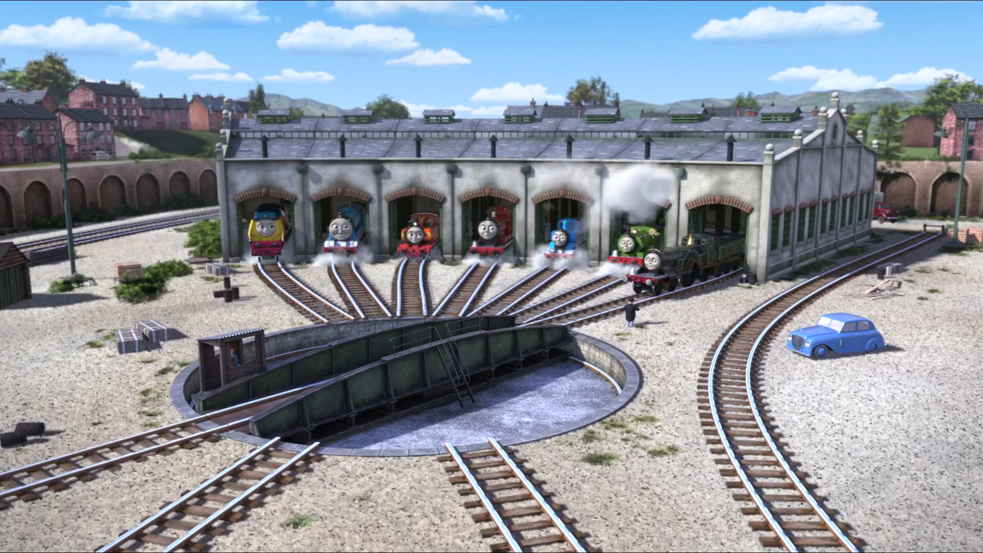 - Despite the sheds having a turntable in the television series, many tie-in books (particularly those illustrated by Richard Courtney) depict them as a row of sheds.