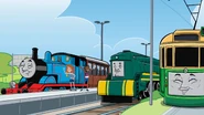 Tracy is a friend of Shane who works on the tramway network around the city of Melbourne. One day, while Thomas was visiting Australia, she was supposed to take the Western Bulldog players from Footscray Station to the iconic MCG for a football match, but Tracy broke down due to her electric line getting disconnected. Fortunately, Thomas had space in his coach and was able to take the players to their match on time.