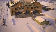 Victor's Shed is a shed located in front of the Sodor Steamworks. Victor and Kevin both sleep here. The shed is open-sided with two narrow gauge tracks inside and a green building on top made of corrugated metal, supported by wooden struts.